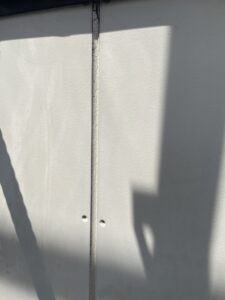 外壁の下塗りにはスズカファイン「カチオンホワイトシーラーエボ」を使用しました。カチオン系シーラーは旧塗膜や素地への密着性が非常に高く、上塗り塗料がしっかりと定着するための”のり”の役割を果たします。